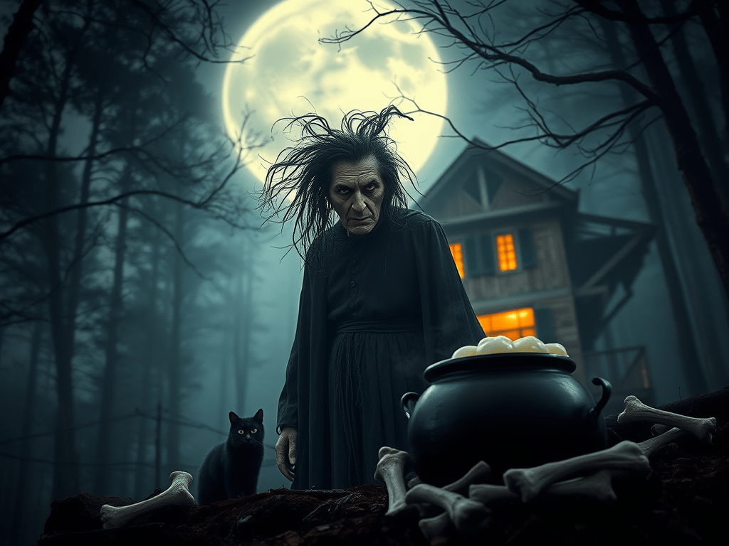 “I will become younger, stronger, most beautiful and loved one…most adored and wanted by all..! Hehe!!” The witch cackled menacingly while her black cat trembled while running and hid behind a pile of bones.