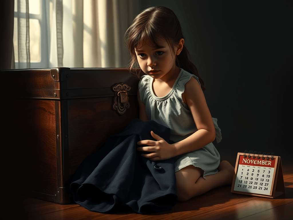 Her eyes widened. ‘I NEVER want November back,’ she dug the calendar, deep below grandpa’s uniform, deep below her heart.